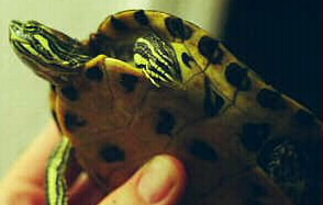 A neighbor found this turtle in her front yard. Turtles like this are not native to Arizona, so we took him in. The vet's has been treating him for a couple of infections, but he's otherwise healthy and quite lively.