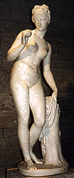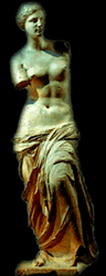 | Para sorpresa de todos se caso con Hefesto, un dios feo y cojo, hijo de Zeus. Aunque no le era nada fiel. Es equivalente a la diosa Venus de la mitología romana. Otra creencia dice que es hija de Zeus y Dione (que, como dato externo, Dione es el nombre de un satélite esférico en el planeta Saturno) que era una de sus concubinas (concubinas: esclavas sexuales). Entre sus amantes figura Ares (dios del fuego) que, en la mitología posterior aparece como su esposo, se dice que un dia que Hefesto no estaba en casa, Afrodita y Ares se fueron a hacer conchinadas a la casa de Hefesto, pero el dios Helio (Que es el dios que lo ve todo, dios sol) le aviso a Hefesto y este realiza una trampa con la cual atrapa a los dos amantes y los exponen a los demas dioses. | ![]() |