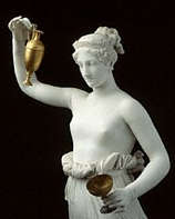 Hija de Zeus, diosa de la juventud. Durante mucho tiempo, Hebe cumplía la función de copera de los dioses, a quienes les servía néctar y ambrosía. El príncipe troyano Ganimedes la sustituyó en esta tarea. De acuerdo con una versión, dejó de ser copera de los dioses cuando se casó con el héroe Hércules, que acababa de ser deificado. Según otra historia, fue apartada de su lugar a causa de una caída que sufrió mientras servía a los dioses. |