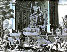 En el Olimpo, Zeus forma un consejo de dioses formado por 6 hombres y 6 mujeres, los integrantes eran: Zeus, Poseidon, Ares, Helius, Hermes, Hefesto, Hera, Atenea, Afrodita, Demeter, Artemisa y Hestía. Zeus se representa como una figura barbuda y de aspecto regio. La más famosa de todas es la hecha por Fidias de marfil y ora, que se encontraba en Olimpia.