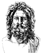 Hijo menor de Cronos y de Rea, que, según un mito, Cronos por miedo de que un hijo suyo lo destronase, se los comía al momento del nacimiento, pero en el nacimiento de Zeus, Rea lo envuelve y le da una piedra envuelta en ropas de niño a Cronos. Zeus es criado por unas ninfas y amamantado por Amaltea, que es una cabra blanca; aunque dicen que amaltea era una ninfa que tenía una cabra... pinches griegos, nunca se ponen de acuerdo. Las ninfas le enseñaron las artes del adulterio y le inculcaron la mania de fajarse a la que el quisiera, convirtiendo al pobre muchacho en un enfermo sexual, promiscuo, prosaico, perturbador de menores y un largo etc. |