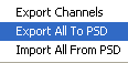 I select 'Export All to PSD' from the drop-down menu (indicated with the red arrow).