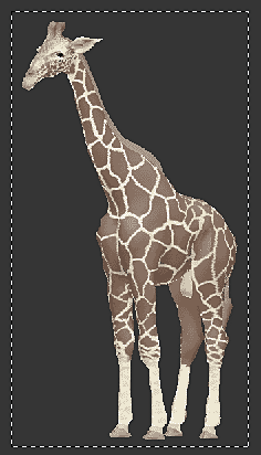 I press 'm' to select Photoshop's 'Rectangular Marquee Tool', drag a Rectangular Marquee around the giraffe. I position the rectangle by clicking the left mouse button and dragging the box until it is cropped correctly.