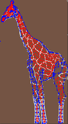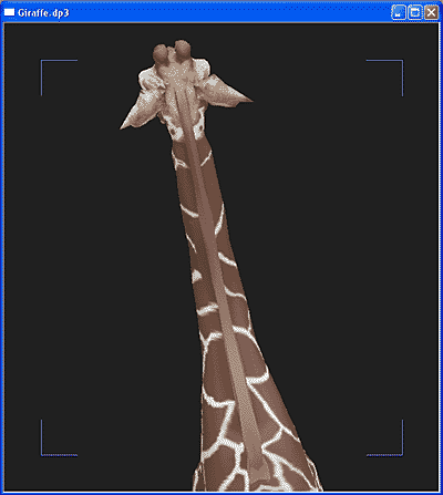 There's a bug that sometimes occurs on my computer, under XP, where this requester won't go away. When this occurs, Deep Paint 3D's menus still function, the program works OK, but the window stays open as if it hasn't completed. If this ever happens to you, select the 'Projection Paint' button again or pick the 'Freehand' Tool. When using Projection Paint, the extra waiting is well rewarded by giving you a much better-quality 3D painting. After I've finished drawing one side of the giraffe, I arrange the entire giraffe in the viewport, increase the size of the window, press the 'Print Screen' button to copy the desktop image to the clipboard. I run Photoshop, press CTRL-n to create a new image, select the default (it will automatically size the image to the size of the clipboard), and press CTRL-v to paste the screen image into the new Photoshop window.