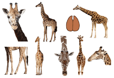DEEPUV & DEEP PAINT 3D, UV MAPPING A GIRAFFE In this tutorial I'm going to create the hardest-to-paint object that I can think of... a giraffe. The first thing I do is I search on the internet for images of giraffes taken at all different angles. I remove any backgrounds using Photoshop so I can see the contours. Although I can't find a close-up of his feet, I do find a drawing of a giraffe's footprint (top row, third from the left). Since the person who did it included the size of the footprint in milimeters, I'll use that in conjunction with a tiny side-view to build his feet.