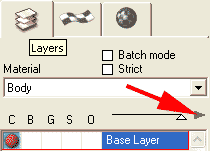 To work on a DeepPaint 3D channel image, I need to export the image. In the 'Layers' tab of the 'Command Panel', I select 'Body' as the Material.