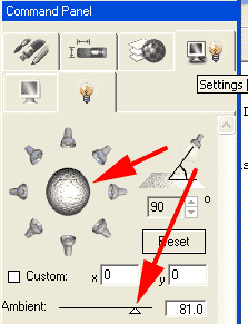 I click 'NO'. When the 'Material Import' requester appears, I click 'OK'. DEEPPAINT 3D, LIGHTING If the lighting is too dark for your object, go to the 'Command Panel' and select the 'Settings' tab. I increase the ambient lighting level, and choose 'all-around' lighting by clicking the central ball.