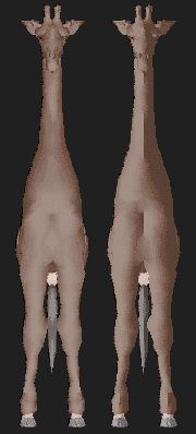 ... the insides of each leg needs work. When I rotate the giraffe so I can see both halves of the back of his neck.