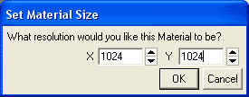 Up where it says 'Object #0', the UV shows that there are UV Maps associated with the object. The checkerboard pattern indicates that a material is available for at least some part of the object. In the 'Material' section, the lack of checkerboards to the left of each Surface Name indicates that no physical image file is yet associated with a material. When I click in the gray area to the left of the 'Body' surface, a 'Set Material Size' requester appears. 512 x 512 pixels is the default, but 1024 x 1024 is generally what is used. I click in the first box and type 1024, then do the same with the other box.