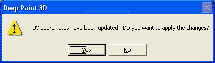 Click 'YES' to apply changes to the updated materials. If you change the UV Maps at any time, select 'File->Export->Send UV Update' and this requester will appear.