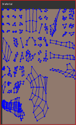 I'm going to use DeepUV's 'Automatic Mapping' button to completely automate the task of creating the UV Maps with a complex object. Without selecting anything, I press 'Automatic Mapping' button (the Command Panel's 'Mapping' tab in the 'Global Mapping Operations' section). I don't need to do 'Preserve Bitmap' because no Material bitmaps have been created, yet. DeepUV creates a UV Map for every surface name I have created. Realize that the material window may not be displaying the most important UV Map for the object, so if nothing seems to have occurred when you create a UV Map, right-click the Material viewport and select the Material you wish to see the UV Map for from the 'Materials' menu item. I select the 'Body' Material, select the 'Zoom' tool, with the left mouse button held down I move my mouse up to zoom in. I hold both mouse buttons and move the mouse to center the section of the UV Map I wish to see.