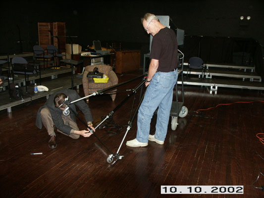 Here our awesome teacher, Alan Tongret, wrestles with the camera tripod while "Chicago" Bruce Klefstad murmurs suggestions.