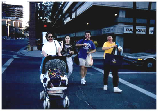 Cindy, Ron, Dee, and Hilary laugh wildly as your Master Thespian runs ahead and walks backward in order to photograph them.