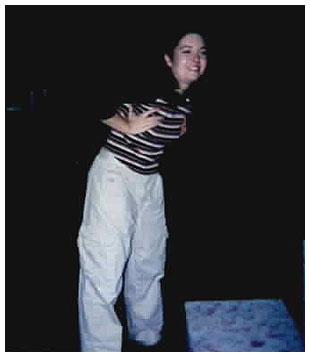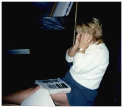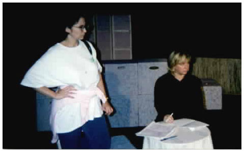 Here, Kim (who played Fran) is shown risking her life, by sitting on the backstage floor of the theater. Her biggest fear, like my own, was letting down her fellow actors.