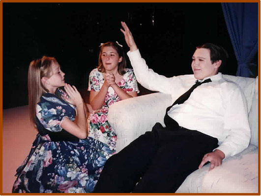Reverend Tooker gives absolution to Trixie and Dixie. This young man is only sixteen, very intelligent, and six foot two inches tall. When not on stage he was either doing his homework or reading graphic novels.