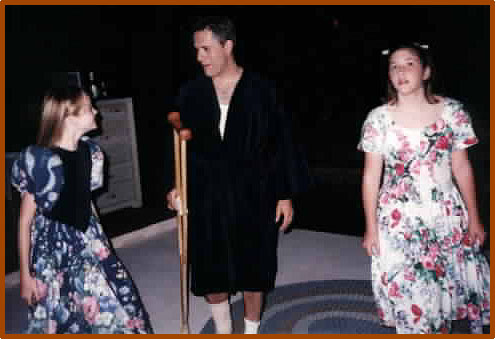 Katie was our stage manager and I thought made an excellent job of it. She also held book, handled the props, occasionally worked sound and helped Big Daddy learn his lines. Once Big Daddy skipped about one half page of dialogue but Katie kept right up and got the sound cue right where it belonged. Katie, of course being a red head, had a crush on Master Thespian, or is it the other way around?