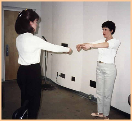 Joyce Hill (Penny) listens as again, someone says something. In the background we can see Kerry, Scott, Gail (on tippy toes) and Bruce, paying strict attention.
