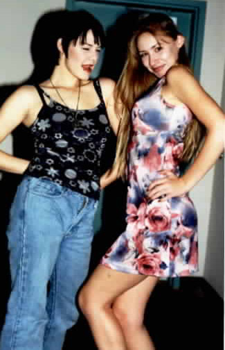 At the after show party, director Alan Tongret thinks, as the gorgeous Neely looks on. Is that a spiked dog collar around that lovely neck?