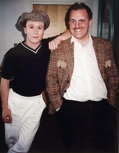 High-schooler's Kyle Hallstrom (Biondello) and Landon Cornett (Curtis) ham it up on the basement stairs. These two had to perform the prop scene changes and they were sometimes the funniest part of the show. Of course not all my fellow actors agreed on this insisting that they 'speed it up!'