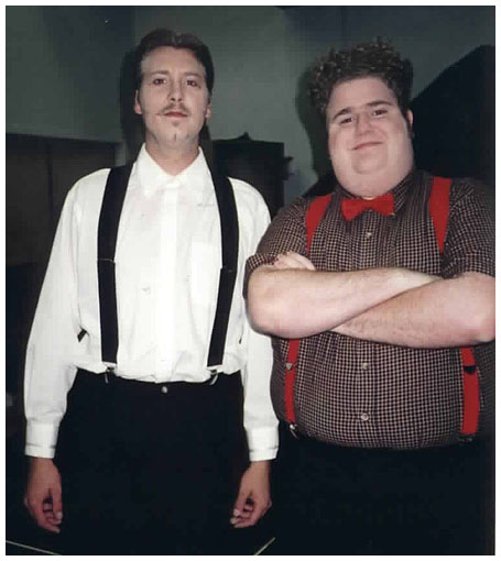 Kim Parmon costumed as Bianca and Ben Patch as Cambio kinda pose for Master Thespian. Kim Parmon has those naturally full and oh-so-soft, luscious lips (hell, she uses one tube of lipstick every performance) that too many Hollywood actresses attempt to emulate with Gortex implants. Their indifferent countenances may be explained by the (possible) fact, that by this time in the production, I had permanently pissed both of them off. Go figure!