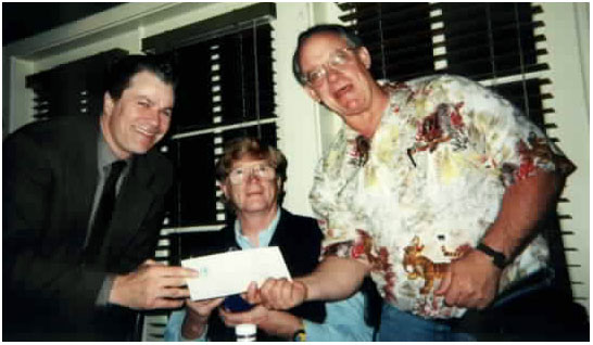 At the Chile's Restaurant on Tatum Boulevard, Master Thespian, is awarded a gift certificate by Alan Tongret, while Graham Whitehead wonders, "Why did I ever cast this guy?"