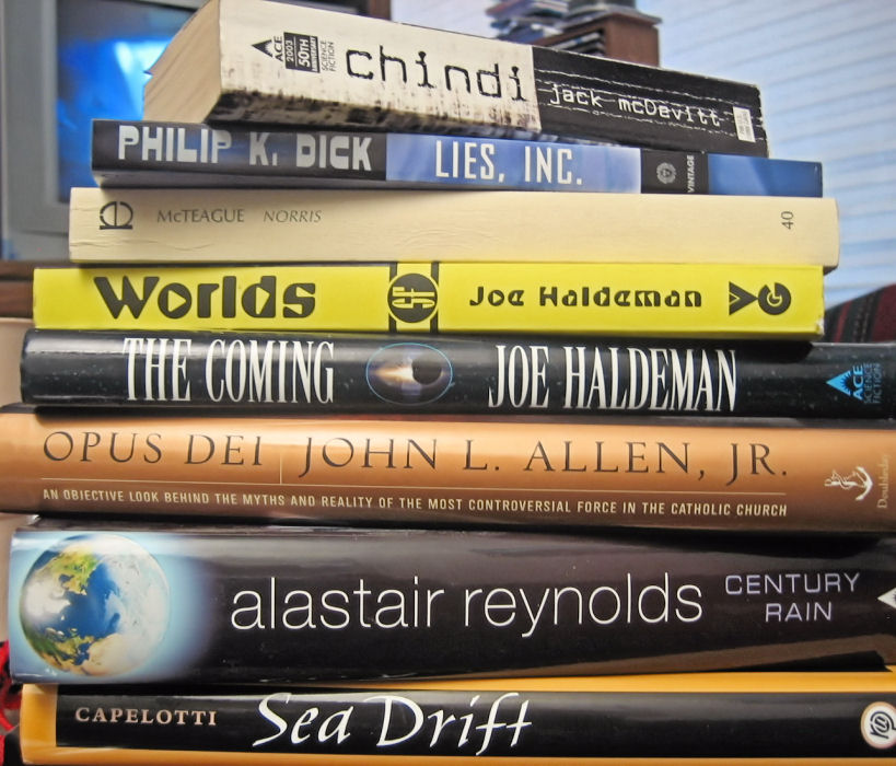chapters and sub-chapters are titled with name of each of the different characters. One chapter will end in the mind of a character, perhaps thinking about someone he or she sees, then the next chapter may begin in the mind of the person the previous one had been observing. My regular readers may recall I favor the genre of Science Fiction because usually