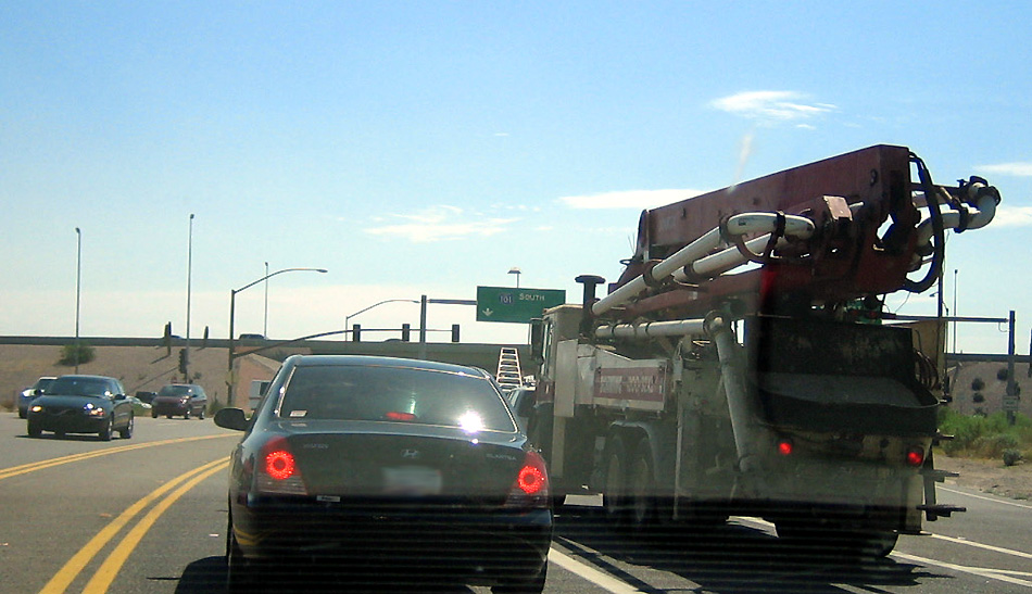 Just another day in Pima Road traffic, brushing up against concrete pumper-trucks that are so huge