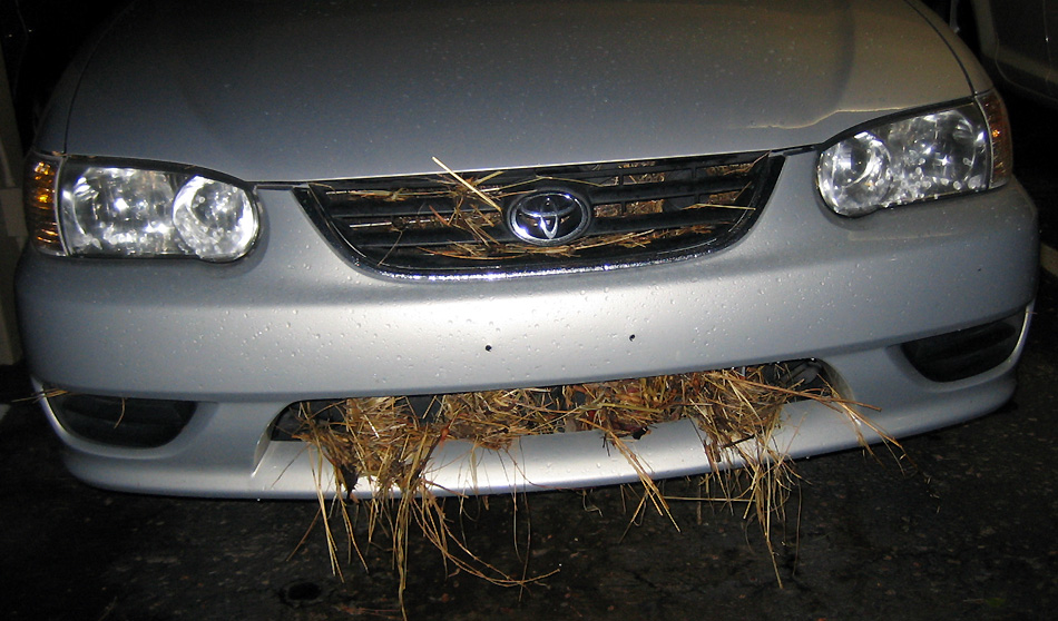 appears to be powered by taking in roadside brush through its grill for fuel.