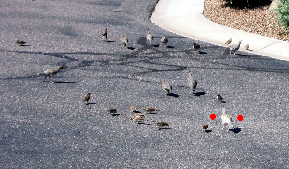 Between the red dots is the first and last photo of The White Quail. Arizona is the home to the Native American Tribe of the Navacasino's. They have a prophecy of a female dealer who, three hundred thirteen pounds, diabetic and dying at age twenty-three, lay on her petrified wood reinforced death bed, and proclaimed she would come back as a White Quail and deal only natural "21's" to the White Man with the initials "M.W.", double-downing while seated at her black jack table. I rushed out to Petsmart and bought the nicest bird cage they had. - Mr.Wonderful