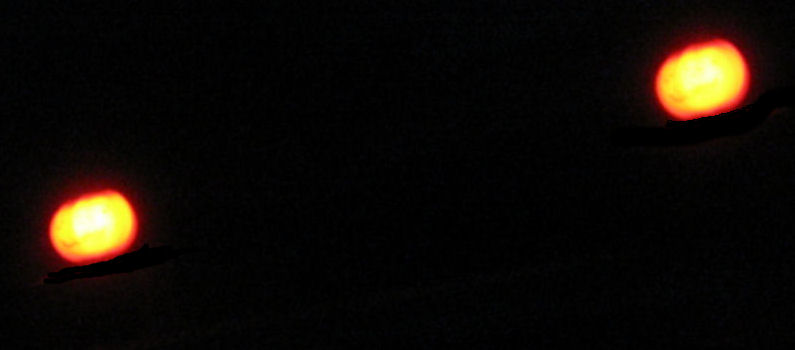 Looking almost like a midnight photo of two Halloween Jack-O-Lanterns taken at