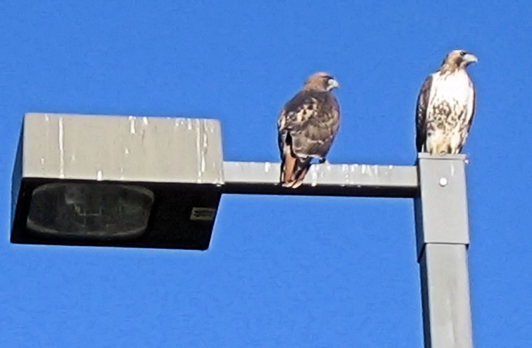 A couple of raptors are seen scoping out their next meal. There's plenty to