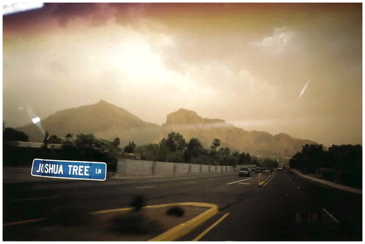 Here is a common Arizona dust-storm (a 'haboob') encroaching on Camelback Mountain. I was traveling on Tatum Boulevard heading south.