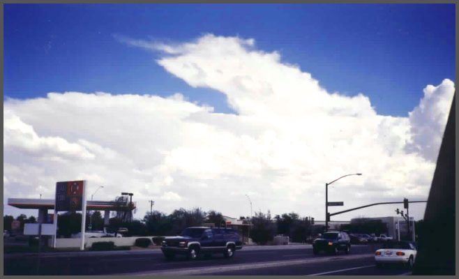 Puffy clouds are seen hanging in the sky a precursor to a summer storm. Your Mr.Wonderful, as a child, growing up in Phoenix, hoping to actually touch one, sometimes used to chase these clouds on his bicycle. I am still chasing clouds folks.