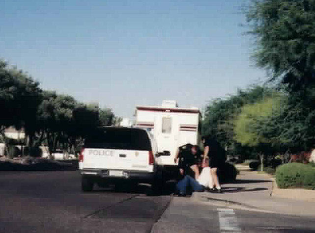While cruising down Mockingbird in the Town of Paradise Valley, I came across this police emergency. I believe the older gentleman had a heart attack when he found he'd been pulled over for speeding. (Inside joke. No one gets speeding tickets from cops in Paradise Valley.)