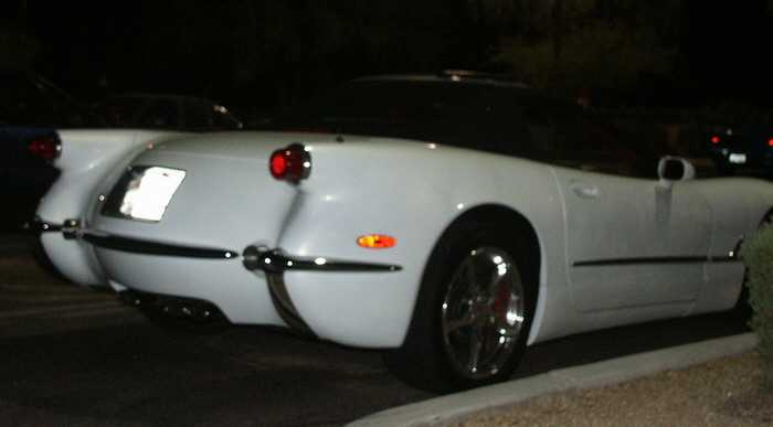 I spotted this hybrid on the northeast corner of Tatum Boulevard and Shea in Phoenix, Arizona. It had Wisconsin plates on it. August 19th,2003: Since I took this photo in 2002, I've discovered that this is a kit-car body that merely fits over a standard Corvette.