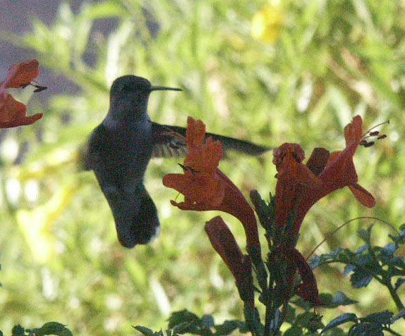 This time shot through a glass window, Rufus tries to convince me that he is not a pansy hummingbird, but actually a bat that flies during the light hours.