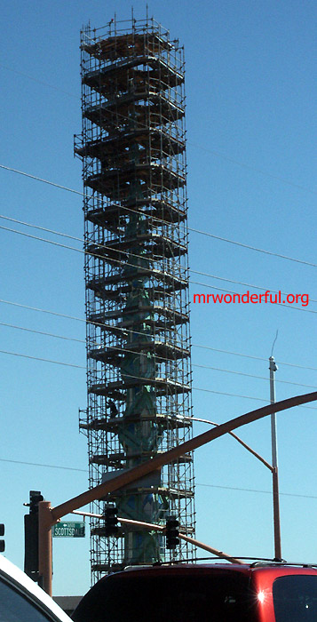 Frank Lloyd Wright Spire situated on the corner of, oddly enough, Frank Lloyd Wright Boulevard and Scottsdale Road in Scottsdale Arizona. Driving in the pre-dawn morning I spotted this thing like a 200 foot tall needle fallen from the sky.
