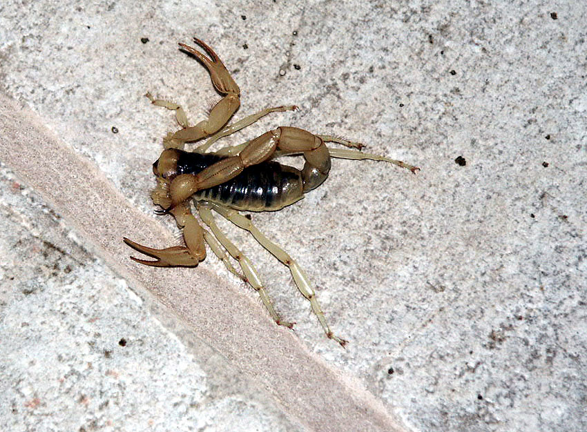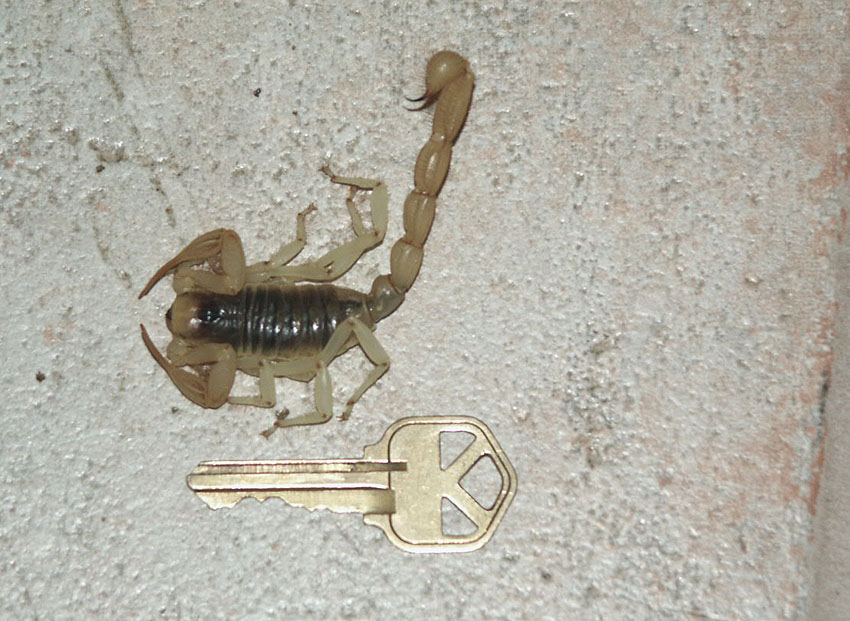 Through collecting these so odd looking and very poisonous arachnids, I went to check the toilets. After I was through checking the British Racing Green hallway toilet, I noticed it had run out of toilet paper. Knowing that I may need to check the toilet the next week, I went in search of a replacement roll. I walked the fifty steps or so into a ground floor bedroom bathroom. One that I had previously carefully checked for scorpions. I pulled open and then closed several drawers. And suddenly this massive bastard appeared. And he was nowhere near dead. I immediately set a new personal record for my vertical leap.