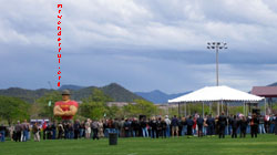 Here's a photo, from a safe distance, of the speaker's platform at the Saturday, March 5th, 2005 motorcycle and "Support our Troops Rally".