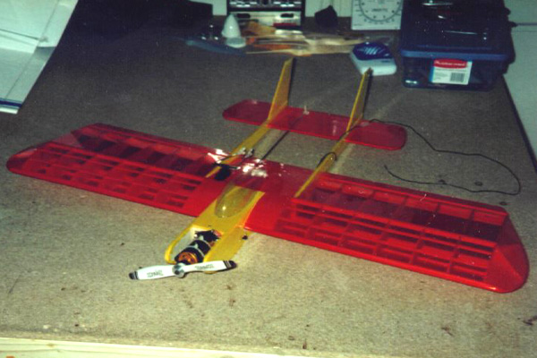 The Aerocraft Snapper built per planes with and Astro 05 motor, Astro 215D ESC w/ BEC, 2 Hitec HS-80 servos, Hitec 535 micro receiver, 8x4 prop, and 7x1000SCR batteries.
