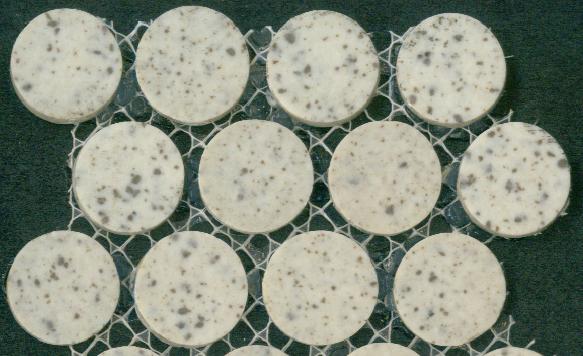 | MOSAIC UNGLAIZED PORCELAIN TILE MOUNTED ON MESH 3/4" ROUND / 1 S.F. SHEET BOX = 37.00 S.F. = 37 PCS |