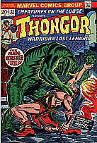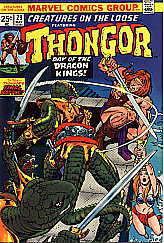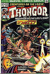 Note: I haven't really tried to lay these out in their proper sequence. Marvel's original rendition of Thongor had black hair, like their version of Conan, but a much more primitive and barbaric face. About 3 issues into the seven issue run, someone decided that Thongor would look better as a redhead, and his hair color changed without a word of explanation why between issue 3 and 4.