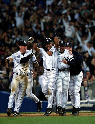 Yanks beat Mets 4 games to 1 to win 2000 World Series...it is the Yankees 26th National Championship, their 3rd in a row and 4th in 5 years....2000 World Series MVP: Derek Jeter.