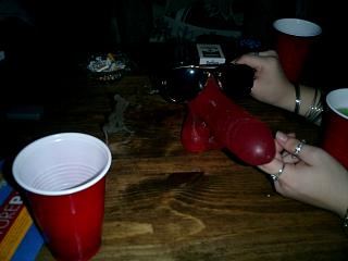 Yes, this is a big pink dildo with Jared's sunglasses on it with my hands supporting it.