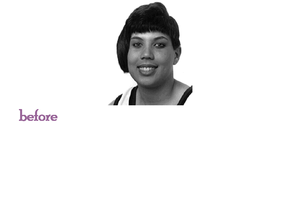 This woman all ready looked kinda of like a guy so I just made her look more like a guy. what I did was i took the texture tool and made her a mustache . I also used the texture tool, to make her a unibrow. I went to google and got a earring. then I used the blur to hide all her freckels. i used the dodge tool to whiten her teeth. |