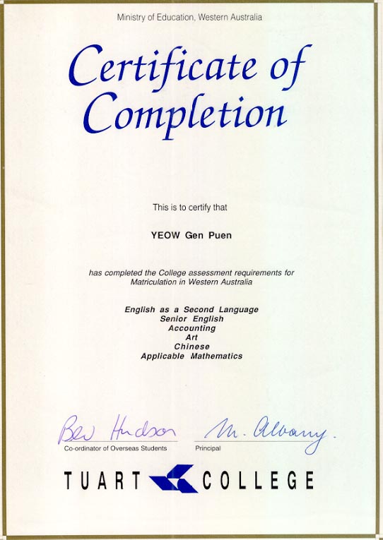 Certificate of Completion College Assesments