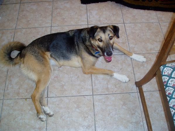 Barkley at home with us, assuming her 3 common positions.. the 4th is her disappearing over the fence. No photos of that yet.