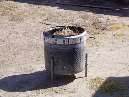 Sweet fire-pit... made out of an old dryer. Take that Crate & Barrel! (We've only caught the back porch on fire once)