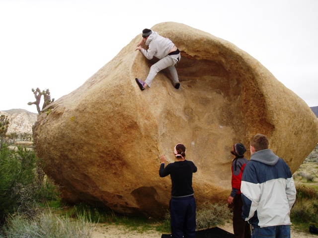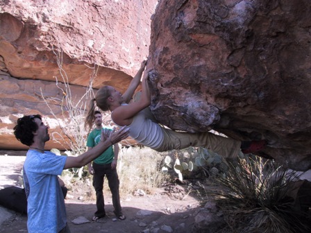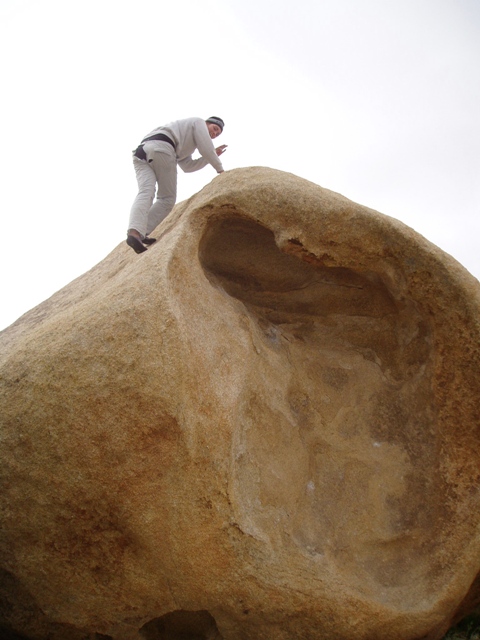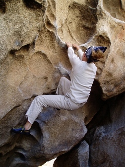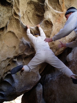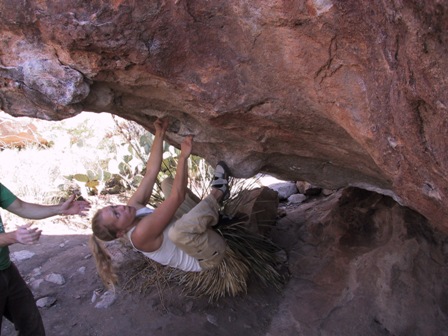 Meghan bouldering at Hueco Tanks, TX, 11/05