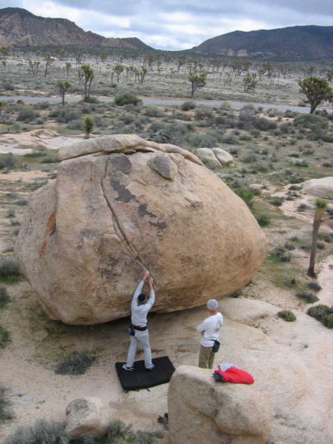 Meghan preparing for a brutal crack climb, JTree, 3/18/05.